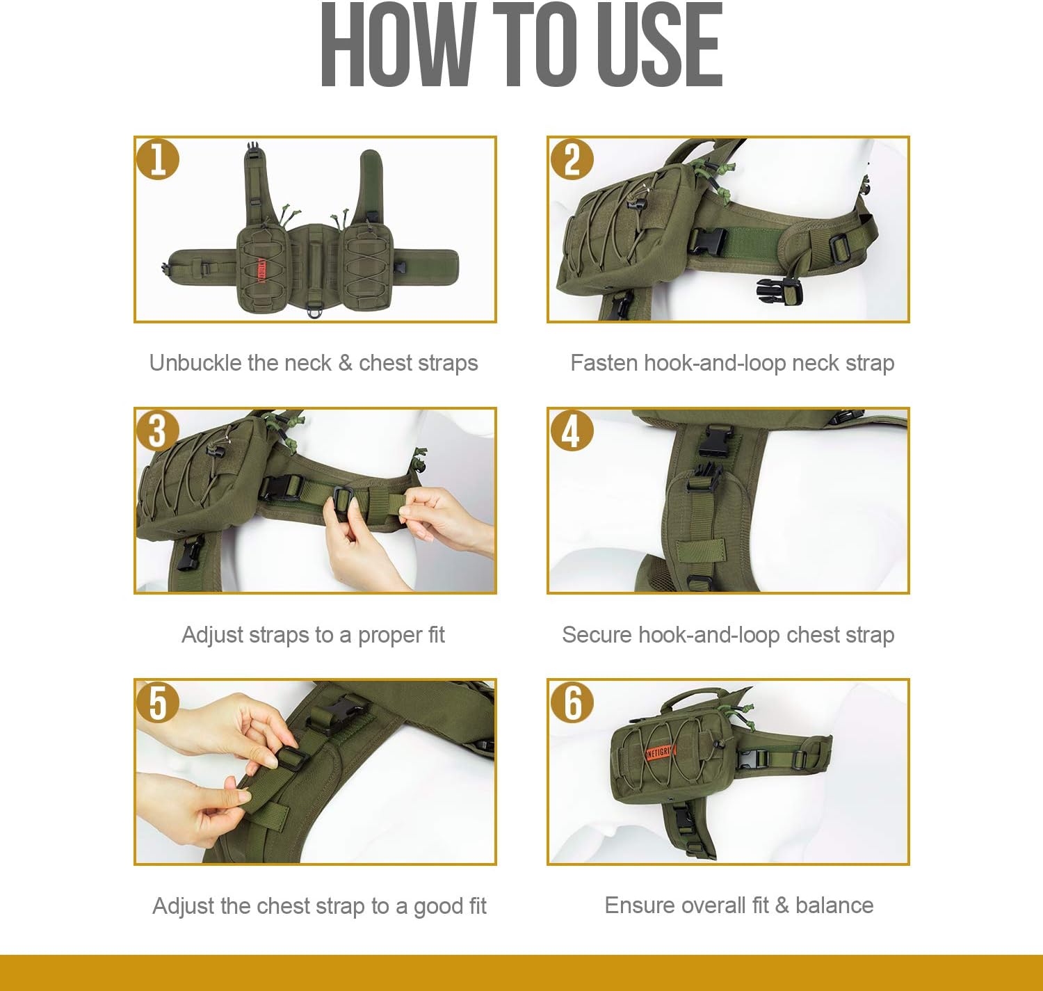 - Adjustable Dog Harness Backpack: Hook-and-loop belly strap with UTX-Duraflex buckles so the pack stays in place and wrap dog's neck & belly around well