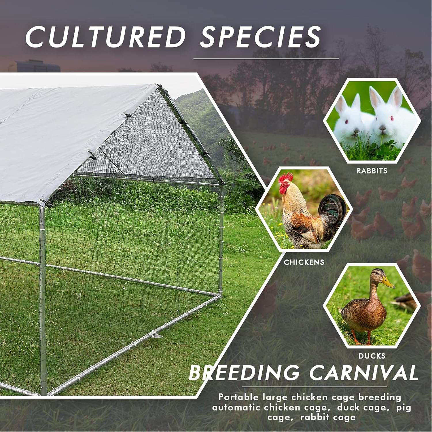 - Durable Steel Chicken run house: The chicken coop uses a durable steel pipe frame, coupled with galvanizing technology, don't worry about rusting in outdoor. The steel pipe diameter reaches 0.98 inches, which is strong and stable enough in windy and heavy rain