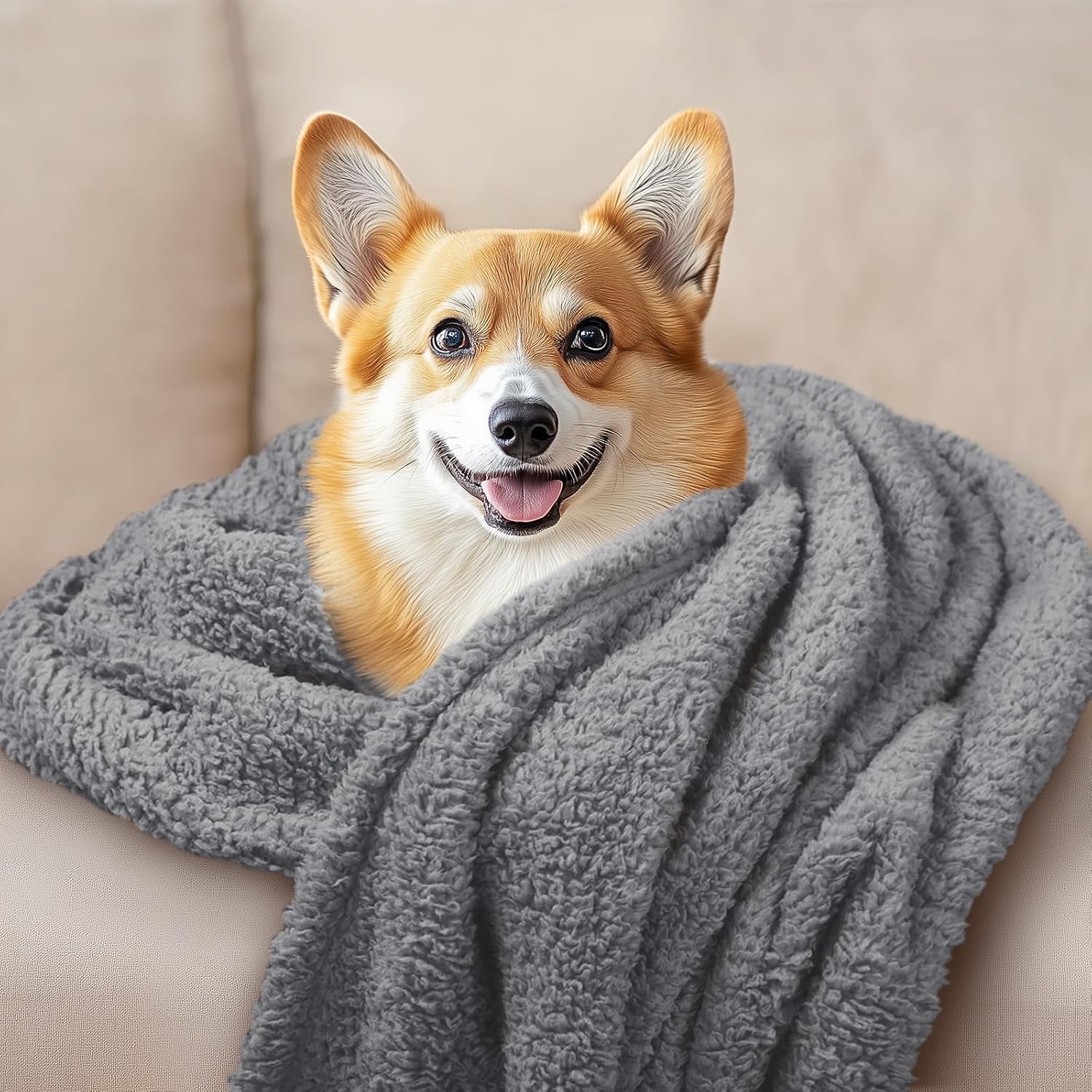 1 Pack 3 Calming Blankets Fluffy Premium Fleece Pet Blanket Soft Sherpa Throw for Dog Puppy Cat Grey Medium (30“x20'')