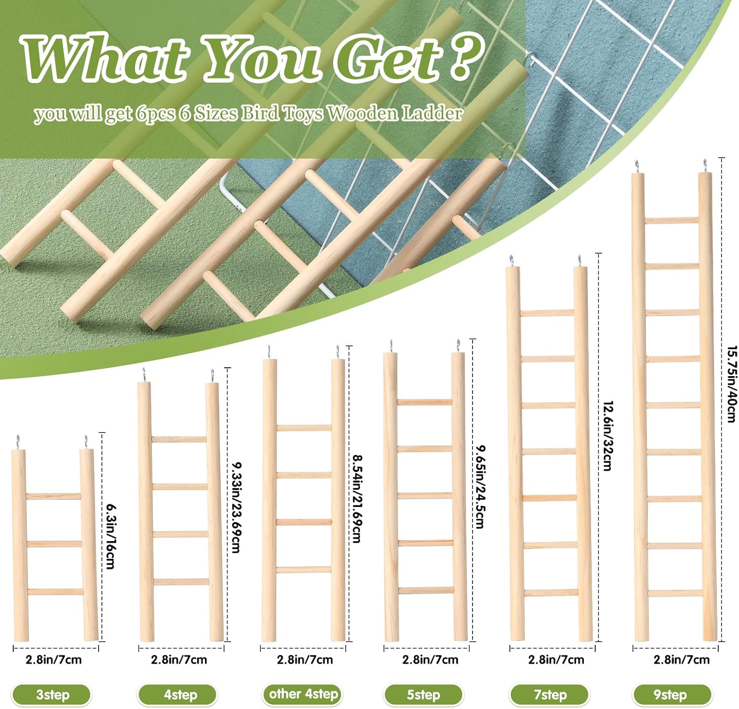 - Package Listing: you will get 6 different sizes of wooden parrots ladders, sufficient quantity and variety of sizes to meet your pet's needs