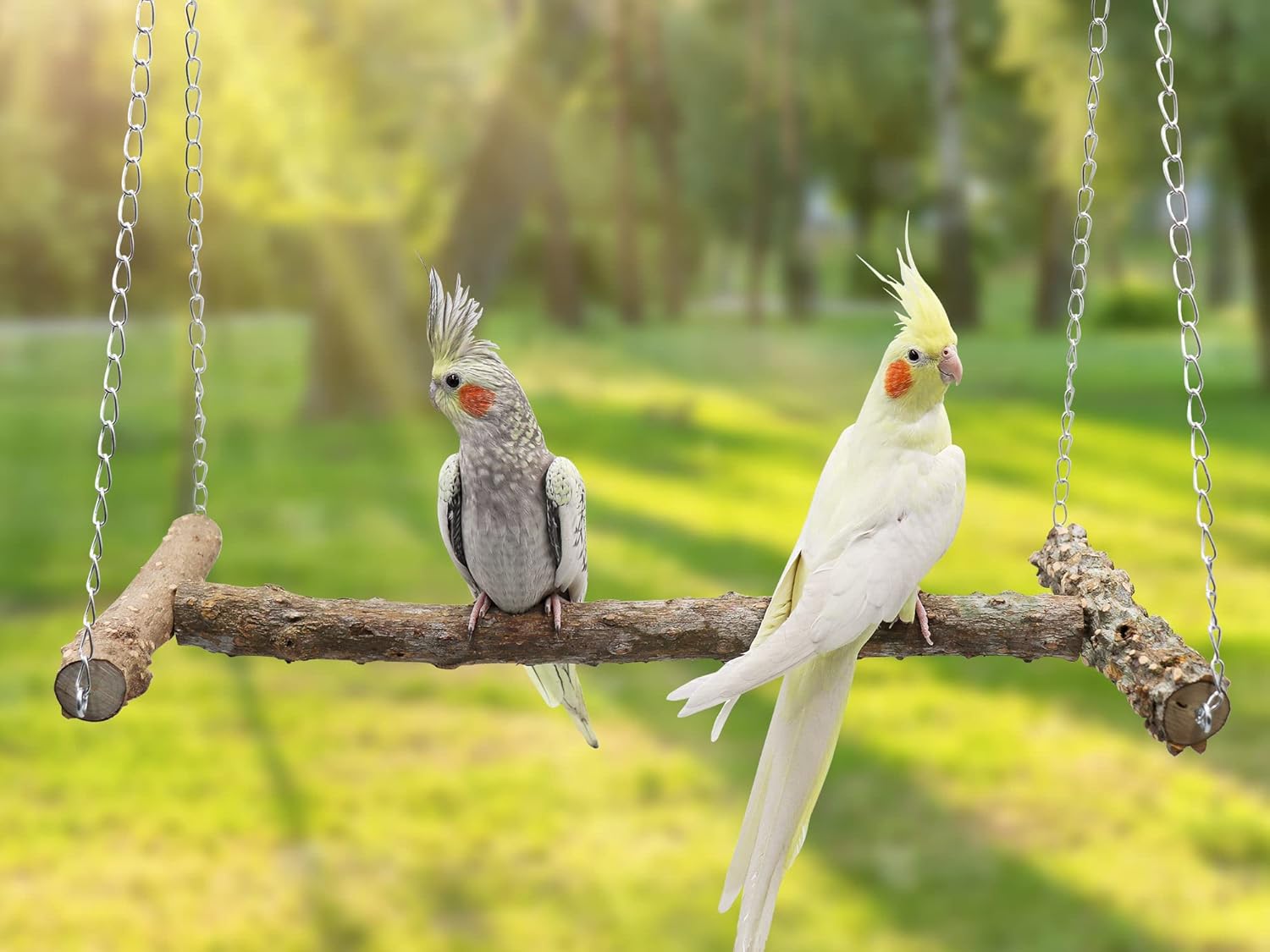 Large Bird Perch Swing Toy, Natural Pepper Wood Parrot Perch Stand Toy, Hangable Birdcage Accessories with Stainless Steel, Bird Chewing Toy for Parrot Parakeet Budgies Lovebirds(18×10 Inches(L×W))