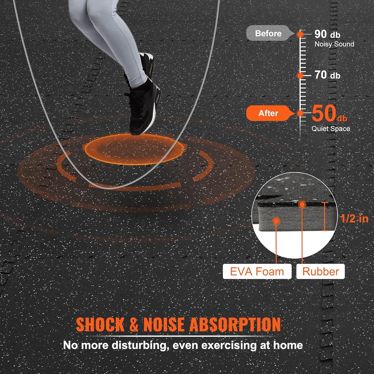 VEVOR 0.56Inch 48sq.ft 12 Tiles Gym Flooring for Home Gym, Rubber Top with High Density EVA Foam,25 x 25In Gym Floor Exercise Equipment Mats, Interlocking Gym Mats, Puzzle Workout Mats, Black & Grey