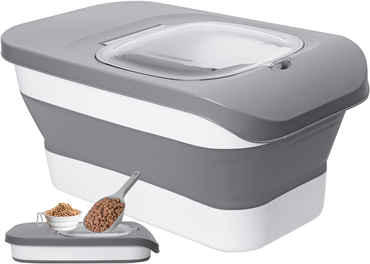 10-13 Lbs Dog Food Stroage Container, Collapsible Dog Food Containers with Airtight Lid, Pet Food Scoop and Silicone Dog Bowl, Pet Food Storage Container Dry Food for Dog, Cat and Other Pets