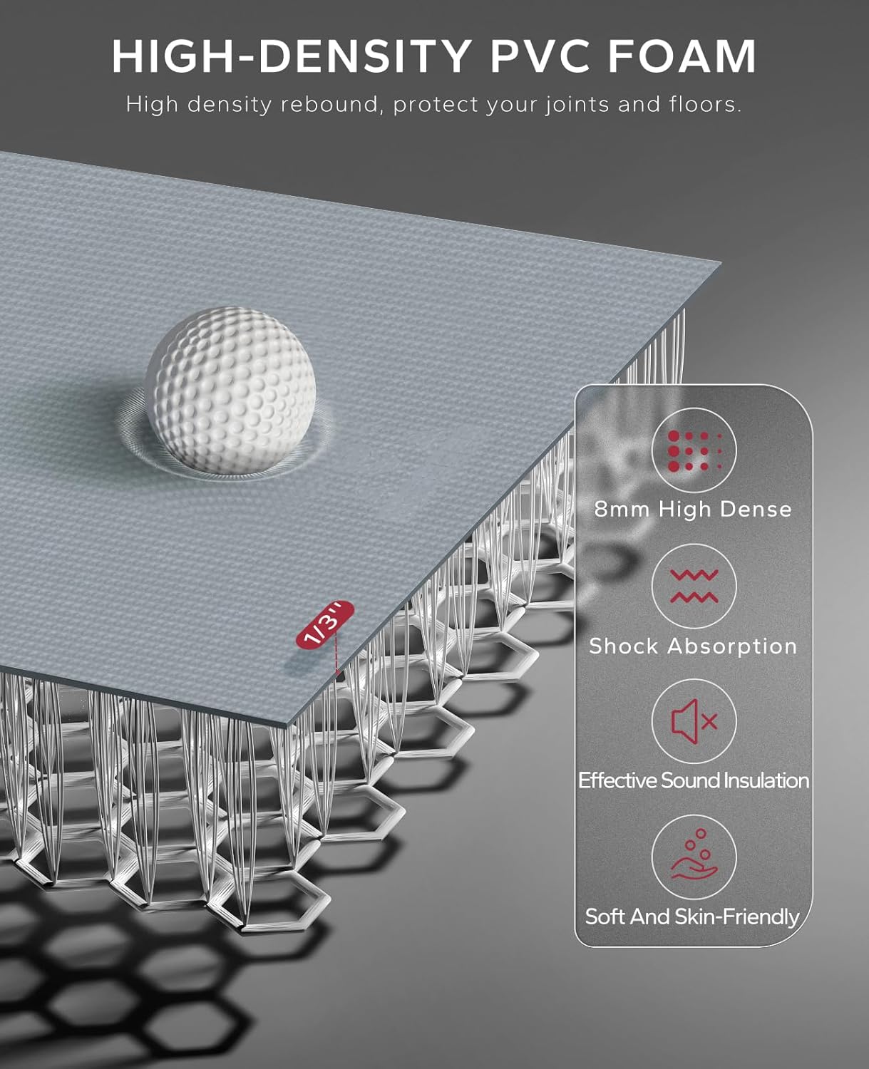 - Extra Cushion & Comfortable: Our large exercise yoga mat adopts high-density foam technology, up to 8mm thick (greater than ⅓ inch).Very soft and skin-friendly. High-density workout mat can protect your knee and other joints during intense aerobic exercise, and play a role in shock absorption. Excellent durability, tear resistance and wear resistance, designed for high-intensity training. It can also reduce noise and protect the floor