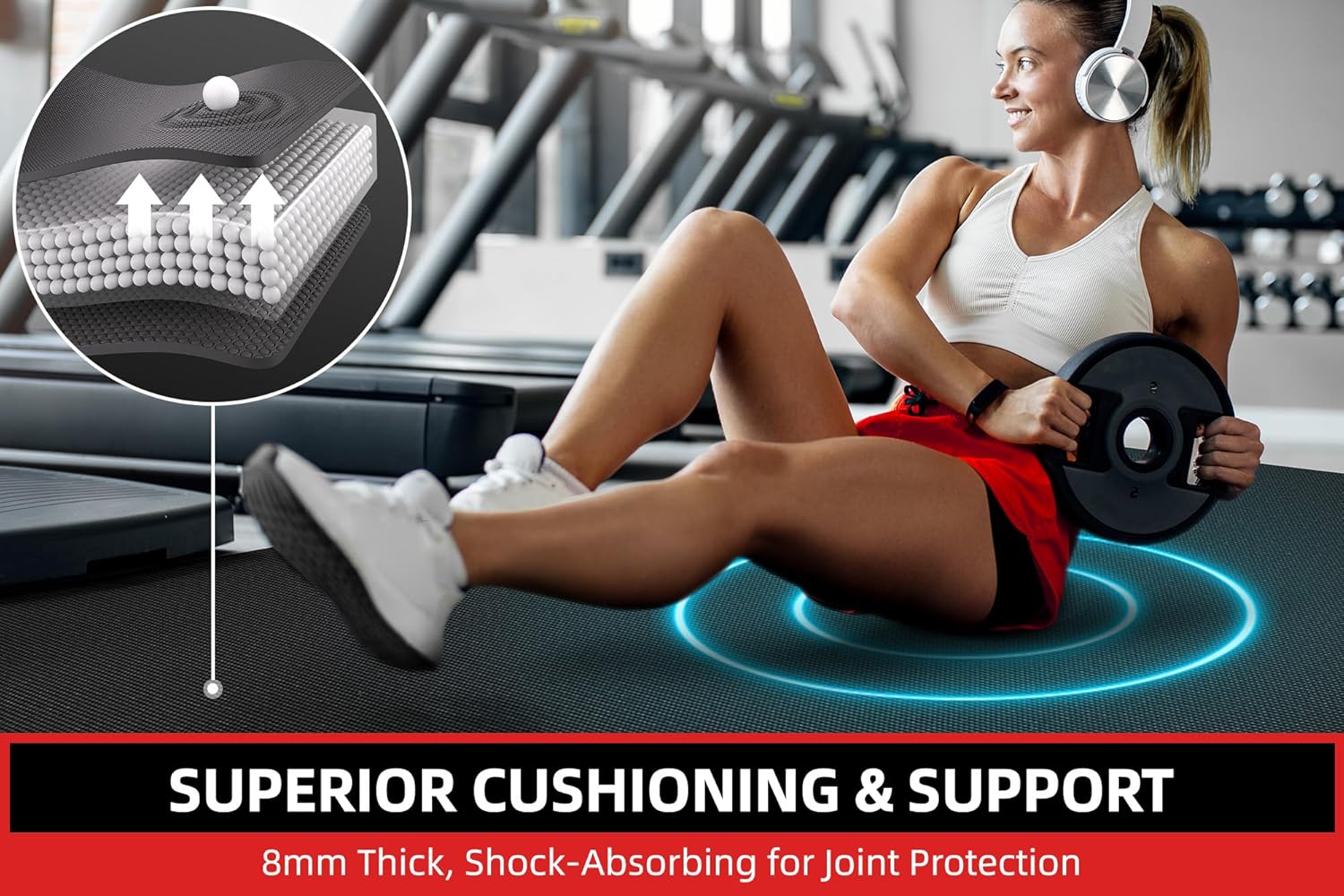 - šÆ Triple-Layer Construction for Ultimate Grip and Durability: Wear-resistant top layer, high-density cushioning middle layer, and non-slip bottom layer provide a secure, stable surface, even during intense jumping or heavy equipment use. Stay grounded and focused on your workouts, knowing your workout mat won't slide.