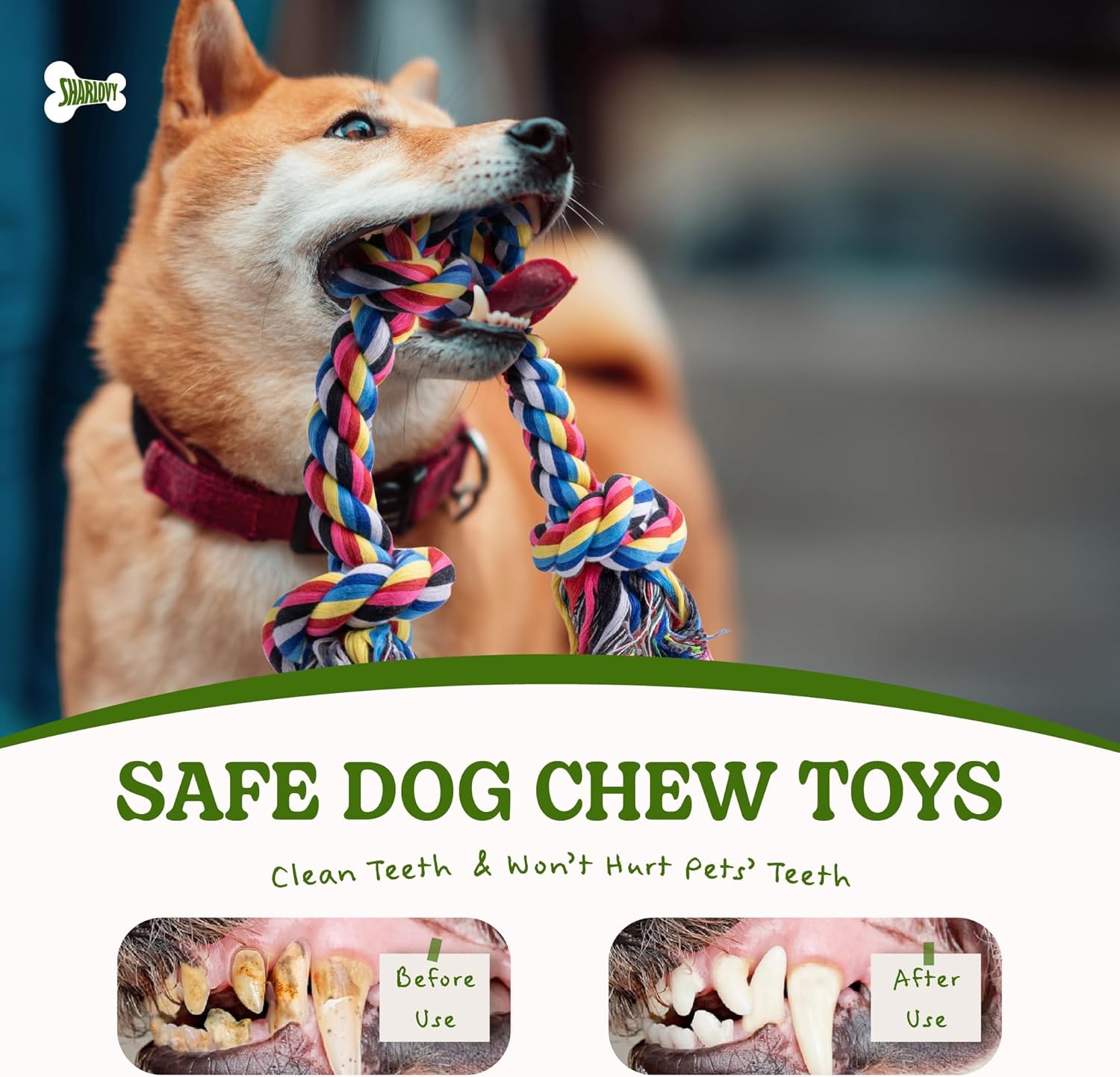 - 【Safe Dog Chew Toys】100% natural cotton chew toys for aggressive chewers, soft and comfortable, safe and odorless,cotton thread fiber deep cleaning teeth while not harming the teeth, to protect the dog's oral health. Accompany your dog to grow up, start with this SHARLOVY dog toys!