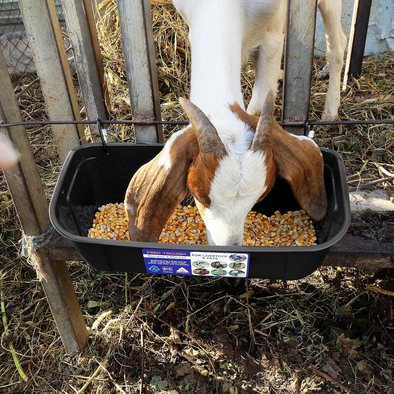 - 【9 Quart Large Capacity】Our 2 pack feeding trough is also watering trough which can hold up to 9 quarts of feed and water. On the one hand, the large capacity eliminates the need to add feed and water frequently, and on the other hand, can let a group of small animals to feed and drink at the same time. Makes feeding more organized and less chaotic.
