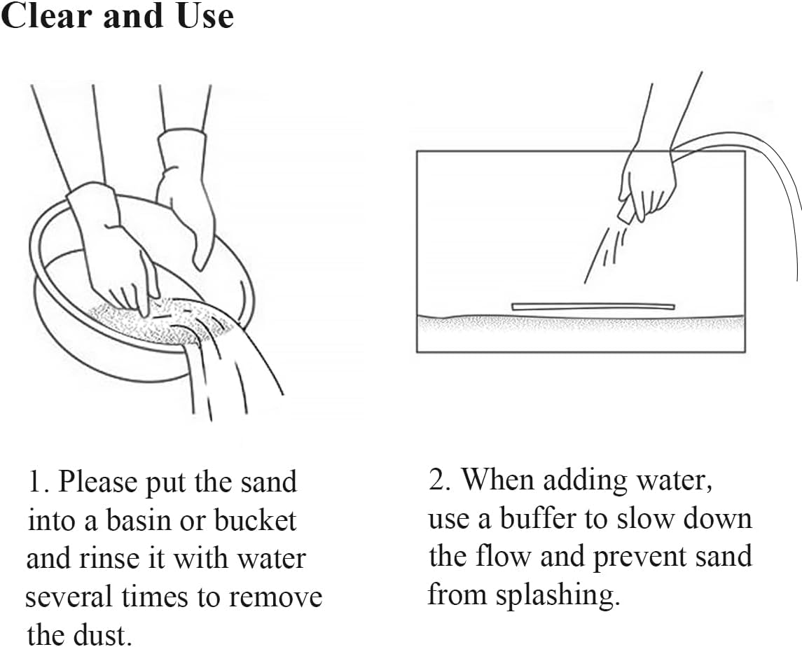 - 【Clear and Use】Please rinse with running water and keep stirring the sand to remove the dust, the water will be a little bit cloudy after you put it into the tank, the filter system will work for 1-2 days to remove it completely