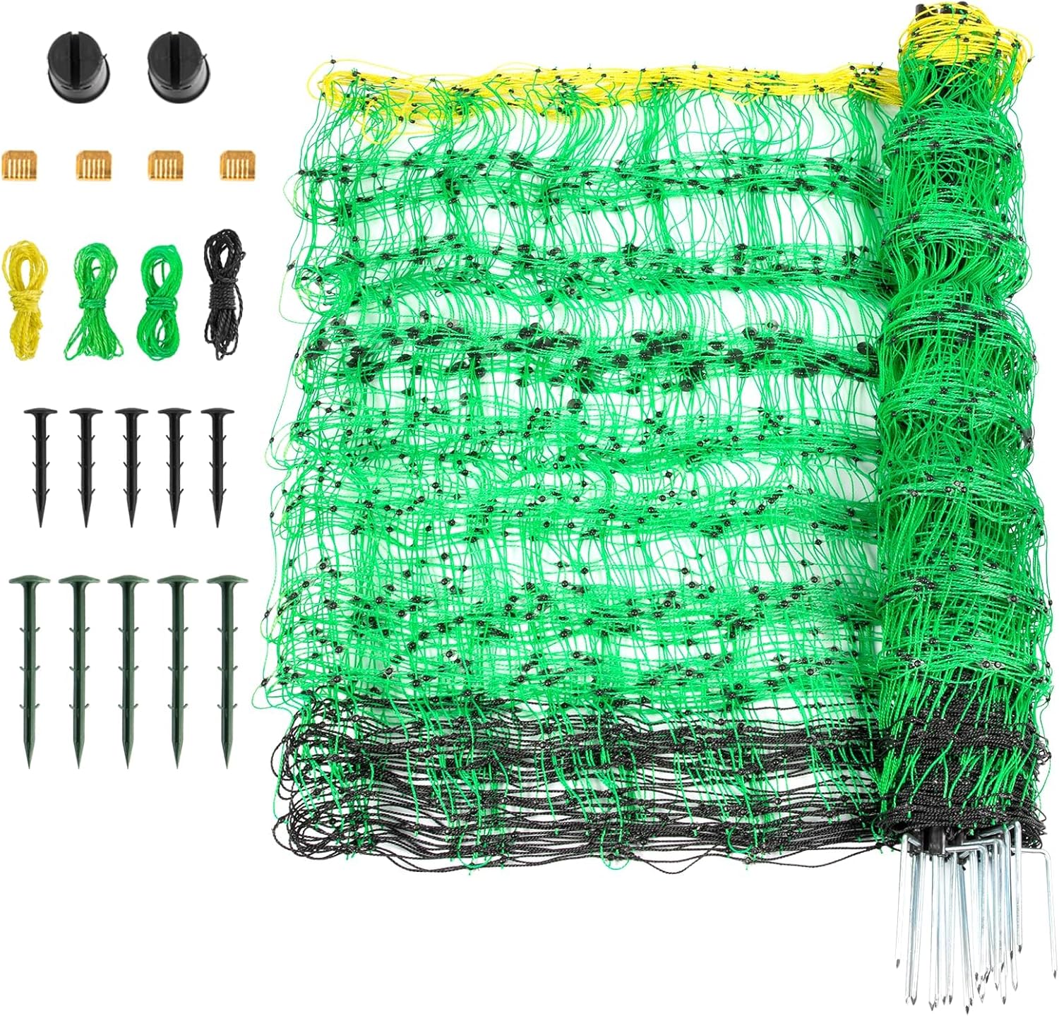Electric Fence Netting, 49.6" H x 164' L, PE Net Fencing Kit with 14 Posts Double Spiked, Utility Portable Mesh for Sheep Hogs Goats Deer Dogs Lambs Used in Backyards Farms Ranches Patio, Green